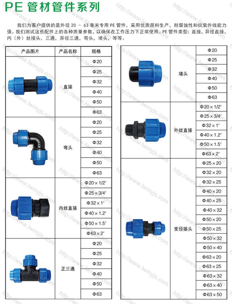 1、適用於大田灌溉、噴灌、微灌、節水灌溉工程及人畜(chù)飲水工程。 2、適用於微滴灌、飲(yǐn)用水、工農業供水係統輸水管道的連接。選用優質的塑料加工製造(zào)、無毒、無味、防老化、使用壽命長。安(ān)裝拆卸極為方便、密封性好、強度高 3、產品規格(gé)齊全、變徑互換性強 用途:可快速連接(jiē)PE管或是PPR、PVC管直接插入擰可快速方便(biàn)特別(bié)是像高山地區沒(méi)有電的(de)情況下用這個接(jiē)頭很方便的。