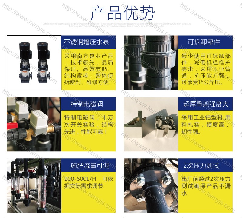 水肥一體機是一種控製灌溉(gài)水水流流量(liàng)、時間及控製施肥比例、施(shī)肥量的一種智能化機器。可擴展自動施肥、配合氣象站完成自動灌溉自動施肥、手機(jī)遠程灌溉施肥。